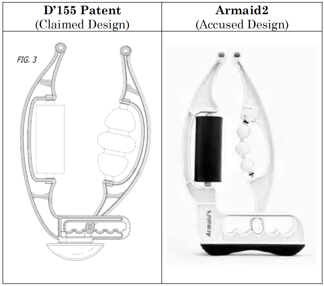In deciding that the D’435 patent was infringed, the Commission affirmed—without further discussion—the finding of infringement in the Initial Determination that was issued by ALJ Doris Johnson Hines on July 10, 2025. In that decision, Judge Hines seems to have been persuaded to not only require a lower overall level of similarity than the Federal Circuit currently requires, but to also effectively ignore several claimed design elements, disregarding them as visually “minor,” “trivial,” or otherwise unimportant.