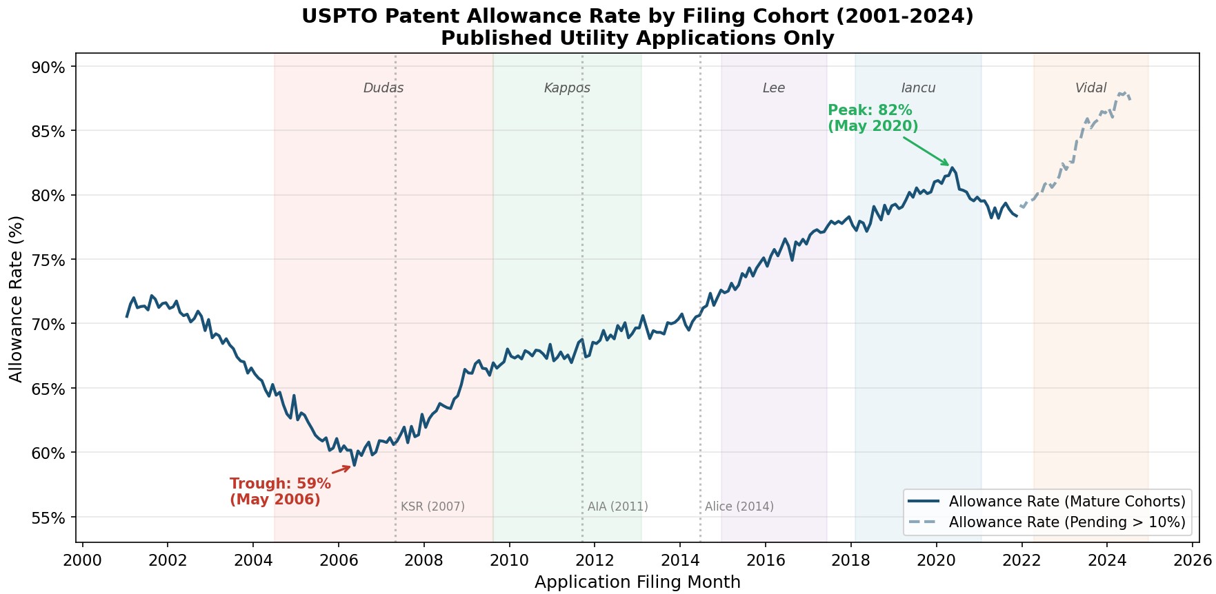The data tell a straightforward story. From 2005 through 2022, the Federal Circuit's dissent rate in precedential opinions averaged about 19%. In some years it ran higher: the 2011-2013 period saw rates of >25%, the highest sustained period of disagreement in the dataset, driven by the doctrinal upheaval surrounding both Alice and the America Invents Act. In other years the rate dipped to around 13-14%. But it never once fell below double digits. In 2023, the year Newman was suspended from the bench, the rate dropped to 10%. In 2024, it fell to 6%,; and in 2025 the rate was even lower. The Federal Circuit's dissent rate is settling into a new equilibrium roughly one-third of what it was for the prior two decades.